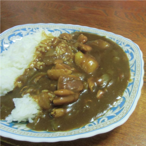 チキンカレー。いつもは豚肉を使っていますが、たまには鶏肉でカレーを作って見ました。